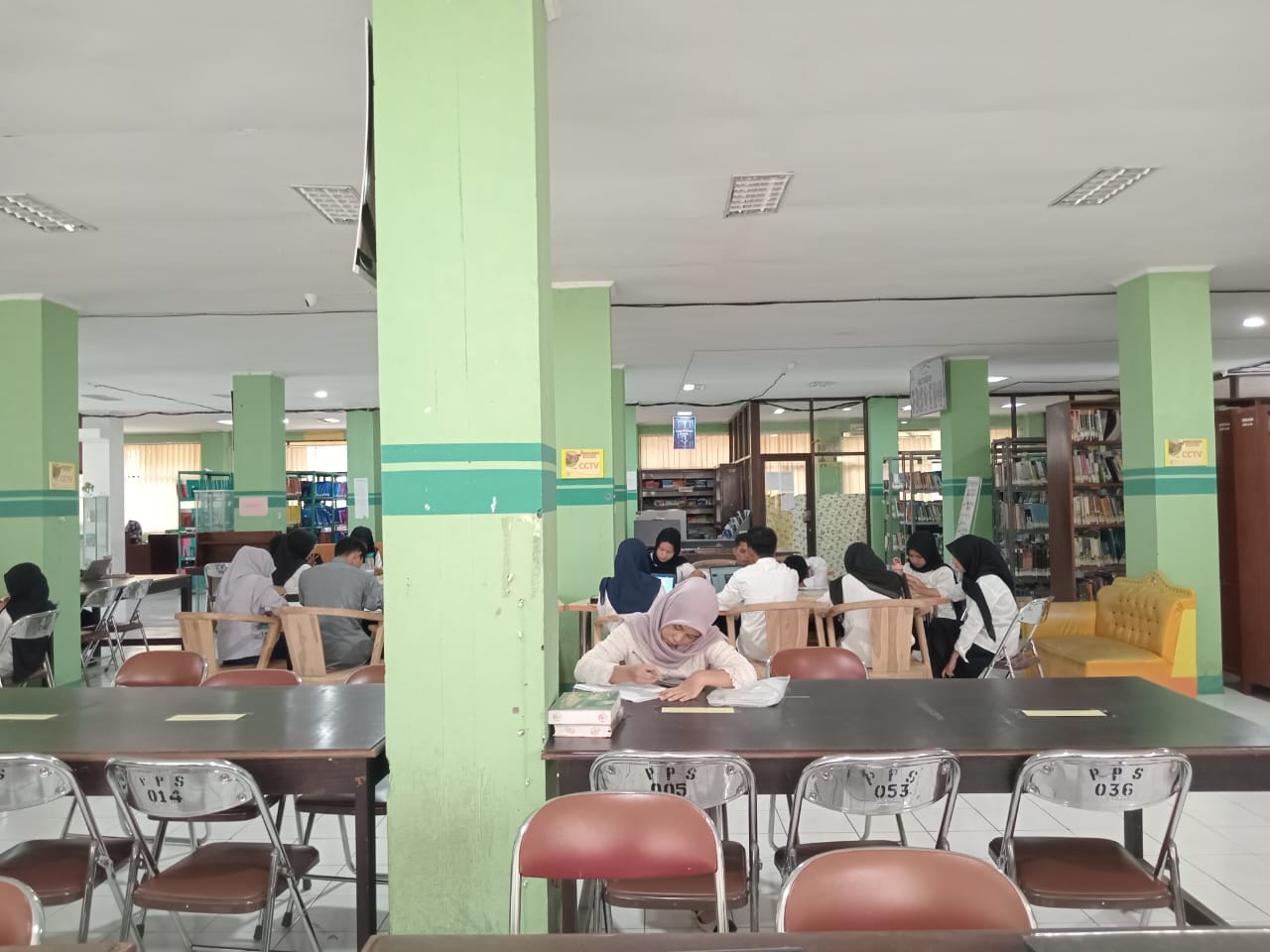 Aktivitas mahasiswa di perpustakaan pun beragam. Sebagian besar datang untuk mengerjakan tugas kelompok atau individu, sementara lainnya memilih membaca buku dan mencari referensi akademik.